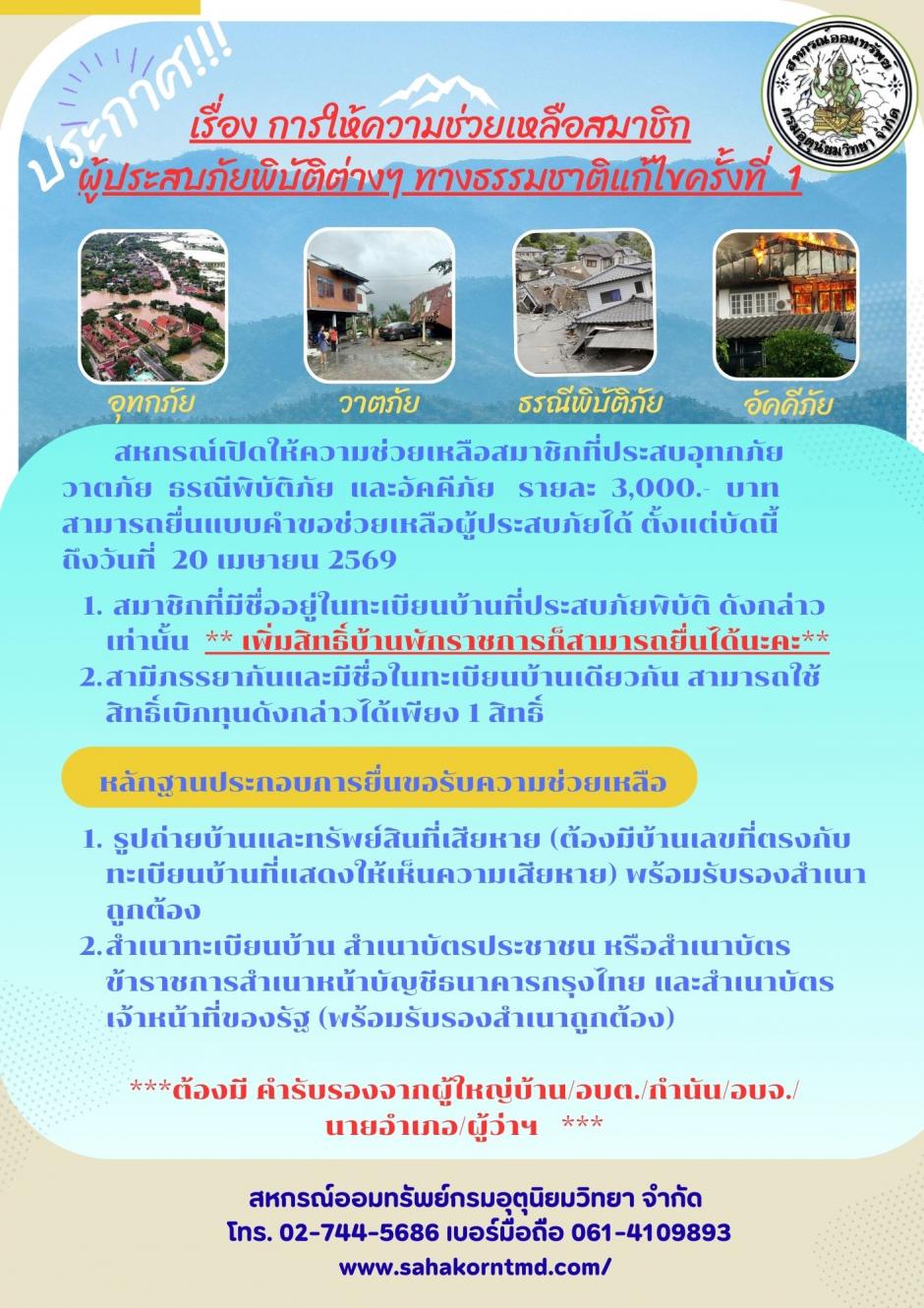 [ประกาศ] | เรื่อง การให้ความช่วยเหลือสมาชิกผู้ประสบภัยพิบัติต่างๆ ทางธรรมชาติ 2568 [29] |